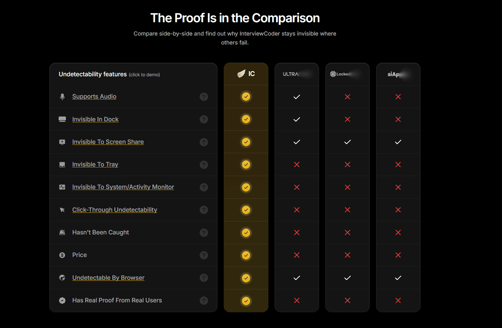 InterviewCoder does not do resume review, mock behavioral interviews, or salary negotiation. If you need those, you'll need separate tools.