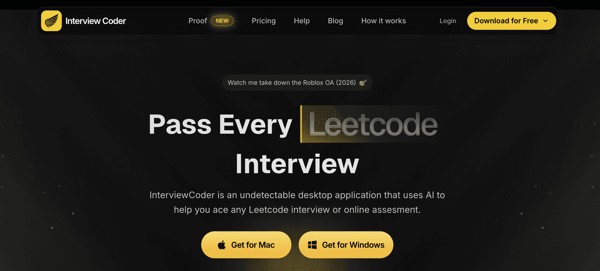 Interview Coder positions itself as a practical alternative to LeetCode by offering an AI-powered assistant that works in real time during live interviews. Its purpose is clear: reduce months of rote problem practice by supplying on-the-spot help, automating solutions and explanations while remaining invisible to screen sharing.